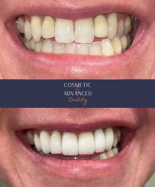This patient required a complex case where we replaced old implant crowns on teeth #7 and 10 (the two next to the two front teeth). Then we did 6 veneers on the other surrounding teeth to give her the smile she had been dreaming about for years‼️