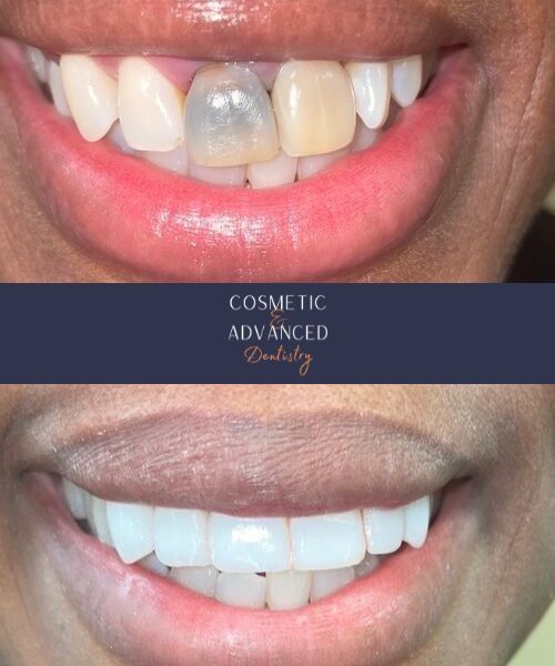 This patient came to us for a smile transformation. With a combo of upper veneers and crowns, we were able to achieve her ideal look!